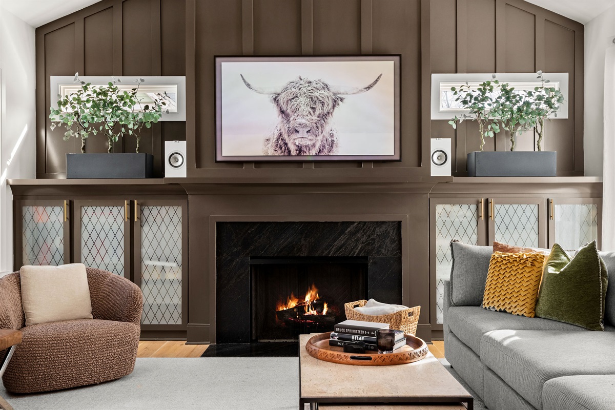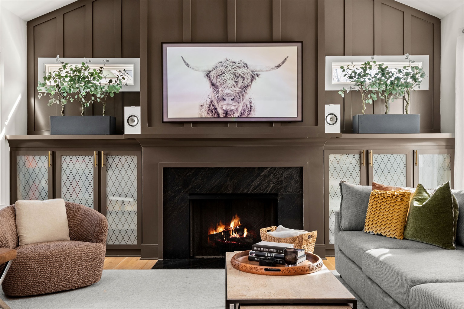 Step inside to a beautifully appointed space with modern furnishings and cozy comforts. The living room features plush seating and a welcoming fireplace, ideal for relaxing evenings.