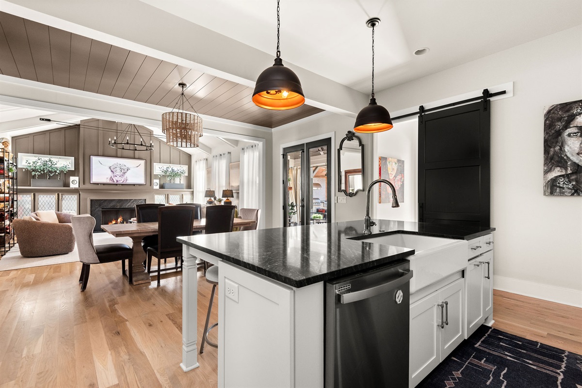 Our backyard is a private paradise! Lounge by the pristine pool with a built-in water feature or dine al fresco in the covered outdoor kitchen, complete with a BBQ grill.